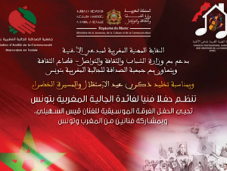 تونس 23 نونبر 2025 ومع : نظمت النقابة المهنية المغربية لمبدعي الأغنية ، أمس السبت بتونس العاصمة، أمسية فنية تخليدا للذكرى الخمسين للمسيرة الخضراء والذكرى ال70 لعيد الاستقلال . وأحيت الحفل الفني، المنظم بتعاون مع