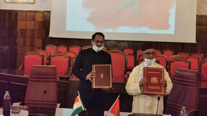 مستحضرا عمق مضامين كلمة جلالة الملك محمد السادس رئيس المجلس الأعلى للسلطة القضائية نصره الله في القمة الثالثة لمنتدى الهند و إفريقيا سنة 2015 بالعاصمة نيودلهي حيث عبر جلالته عن اعتزازه بأول زيارة للهند سنة 1983 عند ترؤسه لوفد المغرب بمؤتمر حركة عدم الانحياز ثم أول زيارة رسمية لجلالته سنة 2001 التي أكد من خلالها على العلاقات المتميزة التي تجمع بين البلدين منذ عهد جده المنعم جلالة الملك محمد الخامس طيب الله ثراه و الزعيم الكبير جواهر لال نهرو و كفاحهما من أجل تحرر و استقلال الدول الإفريقية.