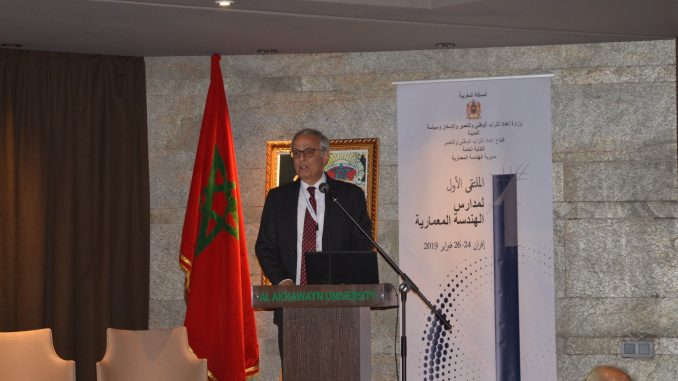 تراس السيد عبد الأحد الفاسي الفهري، وزير إعداد التراب الوطني والتعمير والإسكان وسياسة المدينة يوم الاثنين 25 فبرار 2019 مرفوقا بالسيدة فاطنة الكحيل، كاتبة الدولة المكلفة بالإسكان افتتاح الدورة الأولى لمؤتمر مدارس الهندسة المعمارية بحضور السيد عبد اللطيف النحلى، الكاتب العام لقطاع إعداد التراب الوطني والتعمير بالوزارة والسادة مديري مدارس الهندسة المعمارية بالقطاع العام والخاص وشخصيات أخرى على علاقة بالتكوين في مجال الهندسة المعمارية.