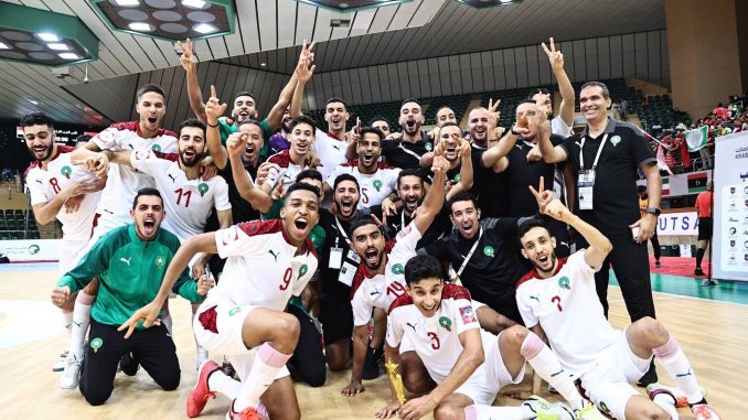 توج المنتخب المغربي ببطولة كأس العرب لكرة قدم الصالات 2022 في نسختها السادسة، بعد أن تجاوز منتخب العراق بثلاثة أهداف نظيفة في المباراة النهائية التي جمعت المنتتخبين اليوم الثلاثاء بالدمام بالمملكة العربية السعودية.