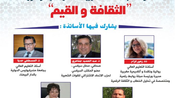 تفتح الجامعة الشعبية المغربية بمكناس، برسم الموسم الجامعي 2023/2022، أبوابها من جديد للجميع وبالمجان أمام محبي المعرفة والثقافة، بمائدة مستديرة في موضوع : “الثقافة والقيم”، يوم 22 أكتوبر الجاري، يشارك فيها ثلة من الأساتذة الباحثين والاعلاميين: عبد الحميد الجماهري، المصطفى حدية، زهور كرام، سعيد الكحل والزهرة اللهيوي.
