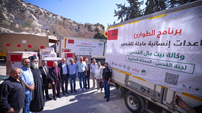 قامت وكالة بيت مال القدس، في إطار التعليمات السامية لصاحب الجلالة الملك محمد السادس، رئيس لجنة القدس، بإرسال مساهمة إنسانية عاجلة للأشقاء الفلسطينيين، تم توزيعها اليوم الخمس بمستشفى جمعية الهلال الأحمر الفلسطيني في القدس.