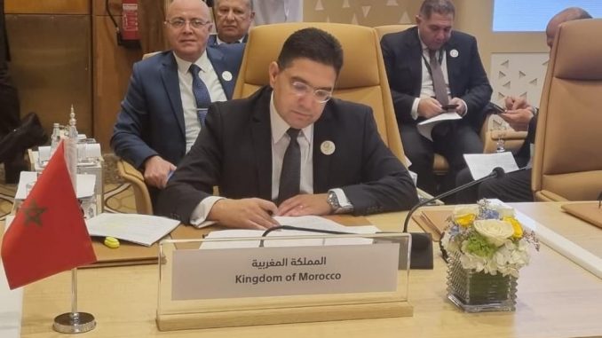 ومن جهة أخرى أكد القادة العرب ضرورة إصدار مجلس الأمن، التابع للأمم المتحدة، قرارا ملزما وعاجلا ل “وقف إطلاق النار ووقف العدوان الإسرائيلي على الشعب الفلسطيني بشكل فوري، بما يضمن حماية جميع المدنيين، ورفع الحصار عن قطاع غزة، والسماح بوصول المساعدات الإنسانية والإغاثية العاجلة إليه بشكل مستدام”، وحذروا من أن “التباطؤ في وقف إطلاق النار من شأنه زيادة احتمالات توسع الصراع إقليميا”. وكانت المملكة المغربية خلال ترؤسها للدورة الطارئة لمجلس الجامعة العربية على المستوى الوزاري الذي عقد بالقاهرة يوم الأربعاء 11 أكتوبر 2023، قد حذرت من أن استمرار التصعيد في المنطقة من شأنه توسيع ساحة المواجهات وإذكاء حلقة العنف والعنف المضاد، وبالتالي القضاء على ما تبقى من فرص وآمال شعوب المنطقة في إقامة سلام دائم وشامل، وهو ما يسائل المجتمع الدولي والقوى الفاعلة وكذا الأعضاء الدائمين بمجلس الأمن حول مدى نجاعة تعاطيهم مع هذه الأزمة المزمنة.