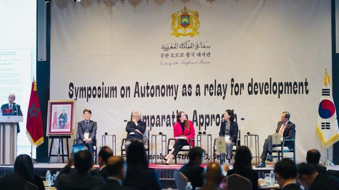وتم خلال هذا اللقاء الذي تميز بمشاركة سفراء يمثلون بلدان مختلفة، وباحثين، وممثلي مجموعات تفكير كورية مرموقة، تسليط الضوء على المخطط المغربي كنموذج ناجح في هذا المجال، تكرسه القرارات المتتالية لمجلس الأمن التابع للأمم المتحدة، الشيء الذي ما فتئ يتعزز على المستويين السياسي والدبلوماسي بفضل الدعم الدولي الواسع.
