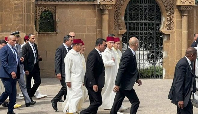 وفي جو من الخشوع، انطلق الموكب الرسمي مشيا على الأقدام، يتقدمه صاحب السمو الملكي ولي العهد الأمير مولاي الحسن وصاحب السمو الملكي الأمير مولاي رشيد باتجاه المسجد الأعظم، وجموع المؤمنين من بينهم أطفال وطلبة الكتاتيب القرآنية وعدد من طلبة معهد محمد السادس لتكوين الأئمة المرشدين والمرشدات، تتضرع إلى الباري جلت قدرته بالدعاء والاستغفار، بأن يسقي عباده وبهيمته، وينشر رحمته، ويحيي بلده الميت، فهو سبحانه وتعالى الملاذ والمرتجى، مصداقا لقوله عز وجل “وهو الذي ينزل الغيث من بعد ما قنطوا وينشر رحمته”.
