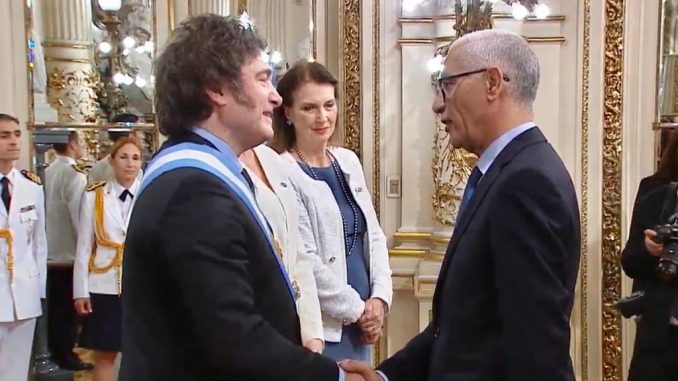 وكان صاحب الجلالة الملك محمد السادس قد بعث ببرقية تهنئة إلى السيد خافيير ميلي، أشاد فيها جلالته بالعلاقات الوثيقة والودية القائمة بين المملكة المغربية وجمهورية الأرجنتين، والتي ترتكز على الصداقة المتينة والتقدير المتبادل، مؤكدا حرص جلالته على العمل سويا مع الرئيس الجديد للأرجنتين من أجل تعميق التعاون الثنائي وتطويره في مختلف المجالات ذات الاهتمام المشترك، لما فيه صالح الشعبين الصديقين.