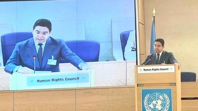 وأوضح أنه بفضل الرؤية الملكية المتبصرة، قطع المغرب أشواطا مهمة لإرساء منظومة متكاملة لحقوق الإنسان، عبر تنزيل العديد من الأوراش الإصلاحية والمبادرات النوعية، من قبيل التجربة المغربية في مجال العدالة الانتقالية، وورش تعديل مدونة الأسرة، والمبادرة الوطنية للتنمية البشرية، والنموذج التنموي للأقاليم الجنوبية، والنموذج التنموي الجديد وتعميم الحماية الاجتماعية، و”كلها أوراش ملكية تضع المواطن المغربي في صلب توجهات وبرامج التنمية المستدامة”.