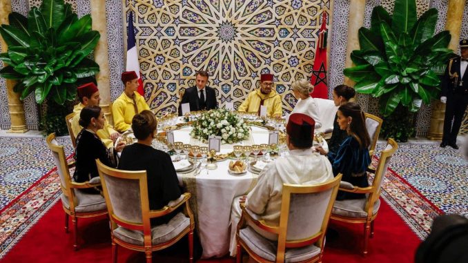 أقام صاحب الجلالة الملك محمد السادس، مرفوقا بصاحب السمو الملكي ولي العهد الأمير مولاي الحسن، وصاحب السمو الملكي الأمير مولاي رشيد، وصاحبات السمو الملكي الأميرات الجليلات للا خديجة وللامريم وللا أسماء وللا حسناء، اليوم الثلاثاء بالقصر الملكي بالرباط، مأدبة عشاء رسمية على شرف رئيس الجمهورية الفرنسية فخامة السيد إيمانويل ماكرون وحرمه السيدة بريجيت ماكرون.