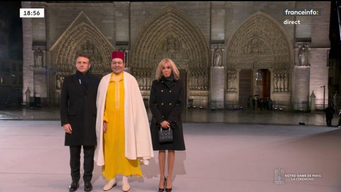 ولدى وصول صاحب السمو الملكي الأمير مولاي رشيد إلى باحة الكاتدرائية، وجد سموه في استقباله رئيس الجمهورية الفرنسية السيد إيمانويل ماكرون والسيدة بريجيت ماكرون.