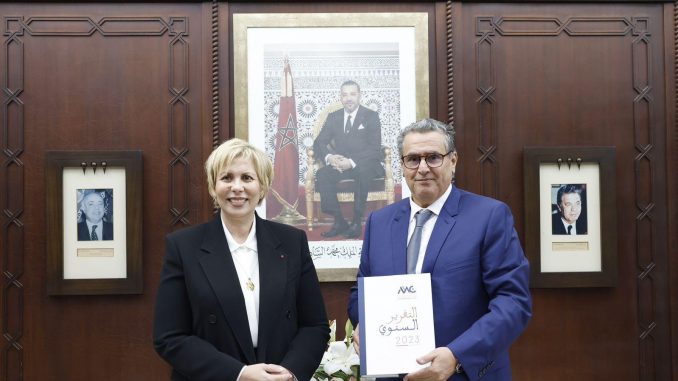 استقبل رئيس الحكومة، السيد عزيز أخنوش، اليوم الخميس 12 دجنبر 2024 بالرباط، رئيسة الهيئة المغربية لسوق الرساميل، السيدة نزهة حيات، التي قدمت له التقرير السنوي للهيئة برسم سنة 2023، مسلطة الضوء على أهم الأحداث التي ميزت سوق الرساميل خلال هذه الفترة، والتي اتسمت باســتمرار تحسـن النمـو الاقتصـادي وتباطـؤ التضخـم.