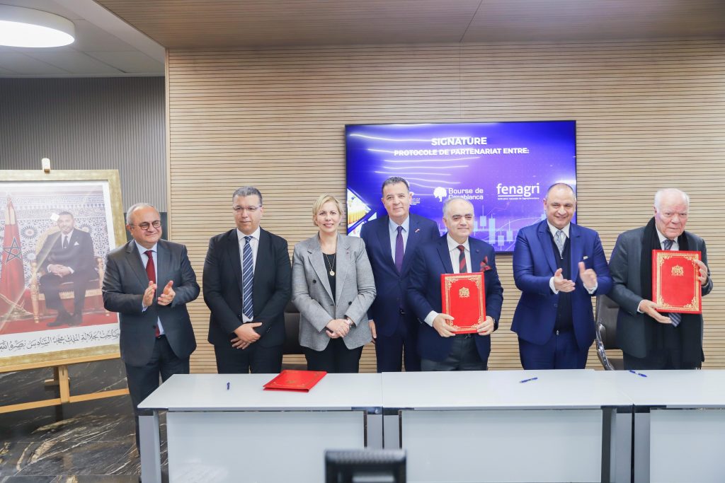 وتجسيداً لهذا الالتزام، تم توقيع بروتوكول شراكة ثان بين السيد طارق الصنهاجي، المدير العام لبورصة الدار البيضاء، والسيد عبد المنعم العلج، رئيس الفدرالية الوطنية للصناعات الغذائية (FENAGRI)، والسيد حسن السنتيسي الإدريسي، رئيس الفيدرالية الوطنية لصناعات تحويل وتثمين منتوجات الصيد البحري بالمغرب (FENIP) لمواكبة مقاولات هذه القطاعات في الاستفادة من آليات التمويل التي توفرها البورصة.