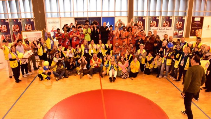 نظمت الجامعة الملكية المغربية للرياضة للجميع، بشراكة مع مؤسسة للا أسماء للأطفال والشباب الصم، أمس الثلاثاء مباراة استعراضية في كرة القدم داخل القاعة بمركب ابن رشد بالرباط، جمعت بين فريق من تلاميذ مؤسسة للا أسماء للأطفال والشباب الصم وفريق مختلط من أعضاء مؤسسة نوادي ” ليونز” الدولية يقوم حاليا بزيارة للمغرب.