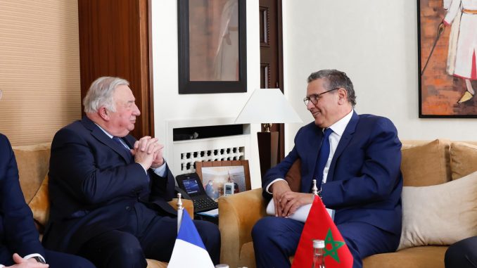 استقبل رئيس الحكومة السيد عزيز أخنوش، مرفوقا بالوزير المنتدب المكلف بالعلاقات مع البرلمان، الناطق الرسمي باسم الحكومة، اليوم الاثنين بالرباط، رئيس مجلس الشيوخ الفرنسي، السيد جيرار لارشي Gérard Larcher، الذي يقوم بزيارة عمل إلى المغرب، ستقوده أيضا إلى مدينة العيون للاطلاع على المشاريع والبرامج التنموية التي تشهدها الأقاليم الجنوبية للمملكة، بفضل القيادة الرشيدة لجلالة الملك محمد السادس، نصره الله.