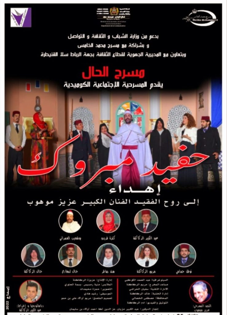 كما يلتقي الجمهور مع هذا العرض المسرحي، اهداء لروح الفنان الراحل عزيز موهوب كاتب المسرحية ، يوم الخميس 27فبراير بالمركز الثقافي المسيرة بفاس.