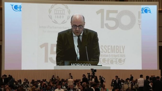 وأكد المسؤول “إننا لنؤمن إيمانا عميقا بأن فضاءات الحوار والتشاور، كما هو حال الجمعية العامة للاتحاد البرلماني الدولي، ينبغي أن تظل منصات لتبادل الرؤى وتنسيق الجهود بشأن القضايا ذات الاهتمام المشترك، بعيدا عن أية اعتبارات أو أجندات ضيقة، وبما يخدم الاستقرار والسلم الإقليمي والدولي، ويعزز التفاهم بين الشعوب ويحقق أهداف منظمتنا”.