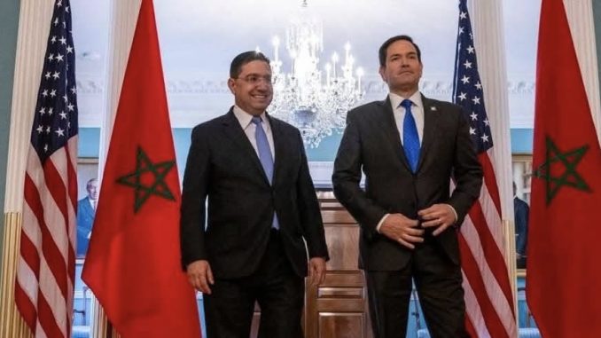 وخلال لقاء جمع اليوم الثلاثاء بواشنطن، وزير الشؤون الخارجية والتعاون الإفريقي والمغاربة المقيمين بالخارج، ناصر بوريطة، وكاتب الدولة الأمريكي، ماركو روبيو، جدد هذا الأخير “التأكيد على أن الولايات المتحدة تعترف بسيادة المغرب على الصحراء”.