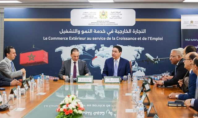 تم يوم الأربعاء 7 ماي 2025 بالرباط، توقيع اتفاقية شراكة تروم رقمنة إجراءات تصدير منتجات الصناعة التقليدية والاقتصاد الاجتماعي والتضامني، وذلك من طرف السيد لحسن السعدي، كاتب الدولة المكلف بالصناعة التقليدية والاقتصاد الاجتماعي والتضامني، والسيد عمر حجيرة، كاتب الدولة المكلف بالتجارة الخارجية، والسيد عبد اللطيف العمراني، المدير العام لإدارة الجمارك والضرائب غير المباشرة، والسيد يوسف أحوزي، المدير العام للشباك الوطني الوحيد لتبسيط مساطر التجارة الخارجية ” PortNet “.