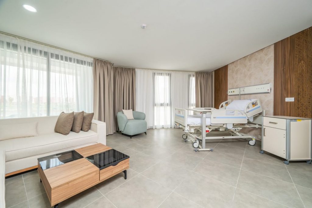 وتشمل هذه المنشأة خدمات قسم الإنعاش (12 جناح شامل) و (7 أجنحة للإنعاش الخدج)، ووحدة العناية المركزة (36 سريرا)، وقسم الولادة (15 حاضنة)، وغرفة الإنعاش بعد العمليات (10 أسر ة) و(2 غرف للتنظير)، وقسم الاستشفاء (28 سريرا)، ومستشفى نهاري (13 سريرا)، وقسم الطوارئ (12 موقعا يعمل على مدار الساعة)، ووحدة القلب التدخلي مع غرفة للقسطرة القلبية لعلاج أمراض القلب والأوعية الدموية.