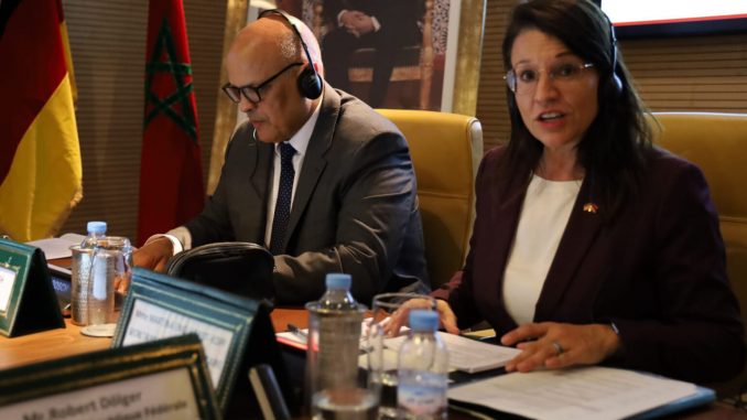 انعقد، أمس الجمعة بالرباط، الاجتماع الأول لفريق العمل المغربي – الألماني حول التغذية والفلاحة، برئاسة كاتبة الدولة البرلمانية بالوزارة الفيدرالية الألمانية للتغذية والفلاحة والهوية الجهوية، مارتينا إنغلهارت-كوبف، والكاتب العام لوزارة الفلاحة والصيد البحري والتنمية القروية والمياه والغابات، رضوان عراش.
