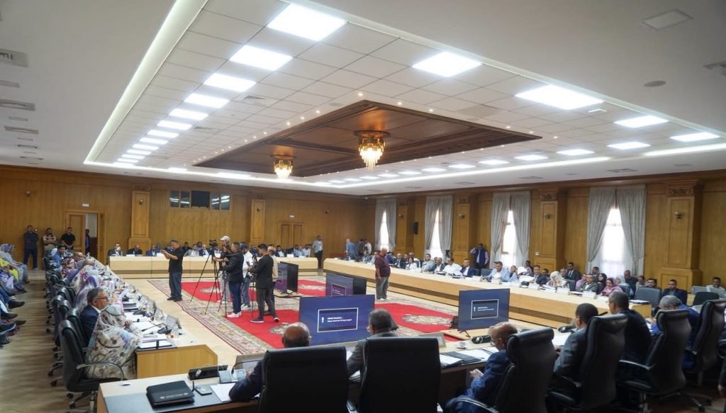 طبقا لأحكام القانون التنظيمي رقم 111.14 المتعلق بالجهات، والصادر بتنفيذه الظهير الشريف رقم 1.15.83 بتاريخ 20 رمضان 1436 (7 يوليوز 2015)، انعقدت صباح اليوم أشغال الدورة العادية لشهر أكتوبر 2025 لمجلس جهة الداخلة – وادي الذهب، برئاسة السيد الخطاط ينجا، رئيس مجلس الجهة، وبحضور السيد علي خليل، والي الجهة، إلى جانب السيدات والسادة عضوات وأعضاء المجلس، وأطر وموظفي الجهة، ورؤساء المصالح اللاممركزة، وممثلين عن فعاليات المجتمع المدني.