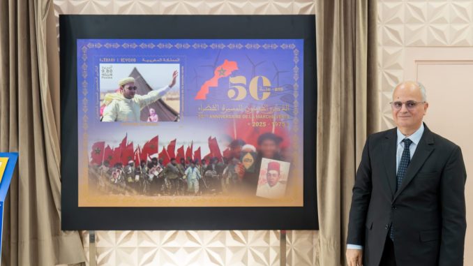الرباط، 4 نونبر 2025 – بمناسبة الذكرى الخمسين للمسيرة الخضراء المظفرة، تحتفل مجموعة بريد المغرب بهذه الملحمة الوطنية من خلال إصدار خاص يتألف من ورقة خاصة وطابع بريدي تذكاري، إلى جانب تنظيم معرض للطوابع البريدية تحت شعار :”المسيرة الخضراء: الذاكرة والتنمية عبر الطوابع البريدية”.