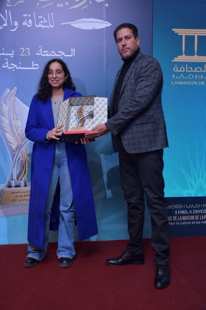 وفي فئة أحسن بحث جامعي لطلبة الصحافة والإعلام، فازت الطالبة سارة الجناتي الإدريسي عن بحث في موضوع “أخلاقيات الصورة في التغطيات الإخبارية لمناطق الحروب تغطية أحداث غزة في قناة الجزيرة نموذجا”، والطالبة ملاك زكاغ عن بحث في موضوع “Le traitement de l’information socio-politique Dans l’info divertissement arabe, étude de cas : Daheeh “.