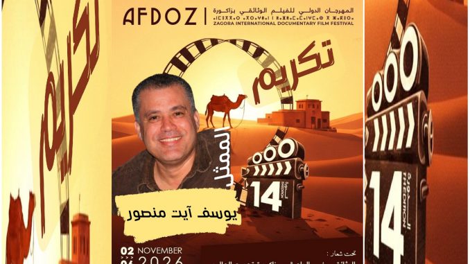في إطار فقرة التكريمات الوطنية، تحتفي فعاليات الدورة 14 من المهرجان الدولي للفيلم الوثائقي، التي تحتضنها مدينة زاكورة من 2 إلى 6 نونبر 2026، تحت شعار: “الوثائقي في الواحة… زاكورة تجمع العالم”، بتجربة الفنان والممثل يوسف آيت منصور، أحد الأسماء التي راكمت حضورا مميزا في الساحة الفنية الوطنية.