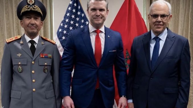 استقبل وزير الحرب الأمريكي، السيد بيت هيغسيث، الوزير المنتدب لدى رئيس الحكومة المكلف بإدارة الدفاع الوطني، السيد عبد اللطيف لوديي، والفريق أول، المفتش العام للقوات المسلحة الملكية وقائد المنطقة الجنوبية، محمد بريظ، وذلك بمناسبة الاجتماع الـ 14 للجنة الاستشارية للدفاع المغربية-الأمريكية، الذي انعقد بواشنطن من 14 إلى 16 أبريل 2026.