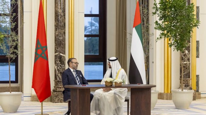 بحث صاحب الجلالة الملك محمد السادس مع أخيه صاحب السمو الشيخ محمد بن زايد آل نهيان رئيس الإمارات ، خلال اتصال هاتفي، العلاقات الأخوية الراسخة ومختلف جوانب التعاون خاصة في المسارات التنموية وسبل تطويرها إلى آفاق أرحب بما يخدم المصالح المتبادلة للبلدين ويعود بالخير والنماء على شعبيهما.