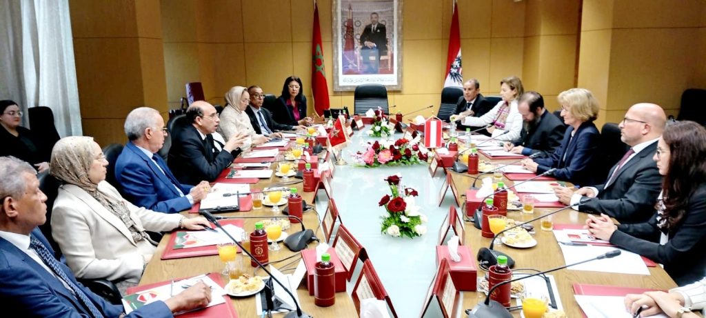 أجرى الوكيل العام للملك لدى محكمة النقض، رئيس النيابة العامــــة، السيد هشام البلاوي، صباح اليوم الإثنين 27 أبريل 2026، بمقر رئاسة النيابة العامة بالرباط، مباحثات مع الوكيلة العامة بجمهورية النمسا، السيدة “مارغريت فاخبيرغر”، التي تقوم بزيارة عمل لبلادنا رفقة وفد رفيع المستوى، في إطار تعزيز علاقات التعاون بين مؤسستي النيابة العامة بكل من المملكة المغربية وجمهورية النمسا، والتي تمتد من تاريخ 26 إلى 28 أبريل 2026.