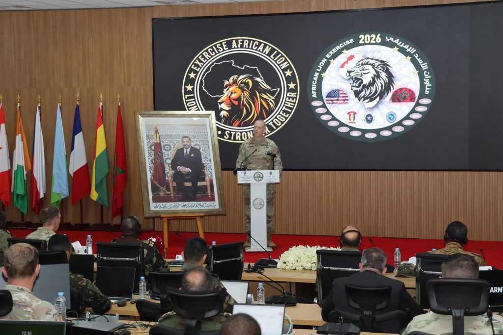 تنفيذاً للتعليمات الملكية السامية لصاحب الجلالة الملك، القائد الأعلى ورئيس أركان الحرب العامة للقوات المسلحة الملكية، تنظم القوات المسلحة الملكية، بشراكة مع القوات المسلحة الأمريكية، النسخة الثانية والعشرين من التمرين المشترك ” الأسد الإفريقي “، والذي يمتد إلى غاية 8 ماي.